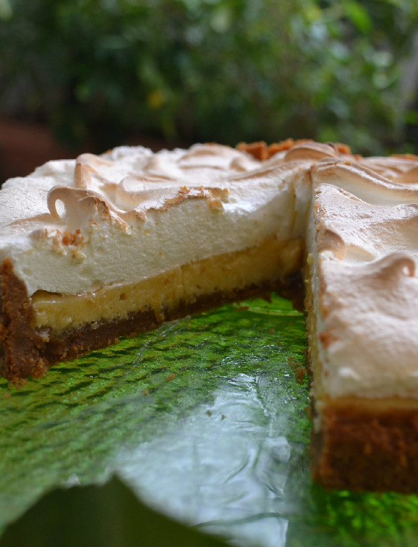 - Χτυπάτε στο μίξερ τα ασπράδια των αβγών με τη ζάχαρη μέχρι η μαρέγκα σας να γίνει πηχτή και γυαλιστερή. Την αδειάζετε πάνω από την κρέμα της τάρτας δίνοντας ωραίο σχήμα και κορυφές. Συνεχίζετε το ψήσιμο μέχρι να πάρει χρώμα η επιφάνεια της μαρέγκας. Αν έχετε φλόγιστρο, καίτε τις κορυφούλες της για να δώσετε την αίσθηση του ψημένου στο γλυκό σας και δεν την ψήνετε άλλο στο γκριλ.